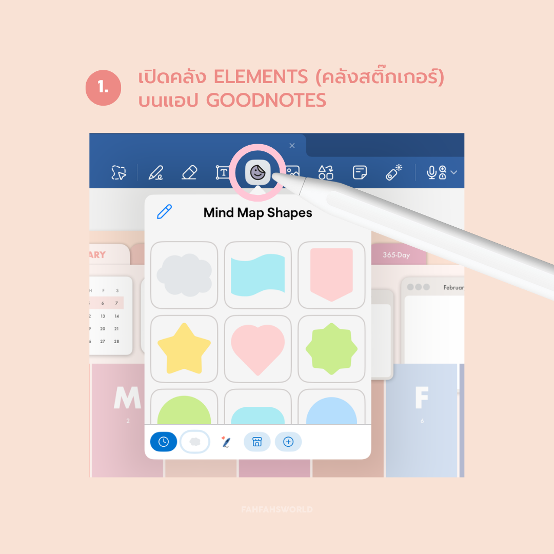 - เปิดคลัง Elements (คลังสติ๊กเกอร์) บนแอป GoodNotes