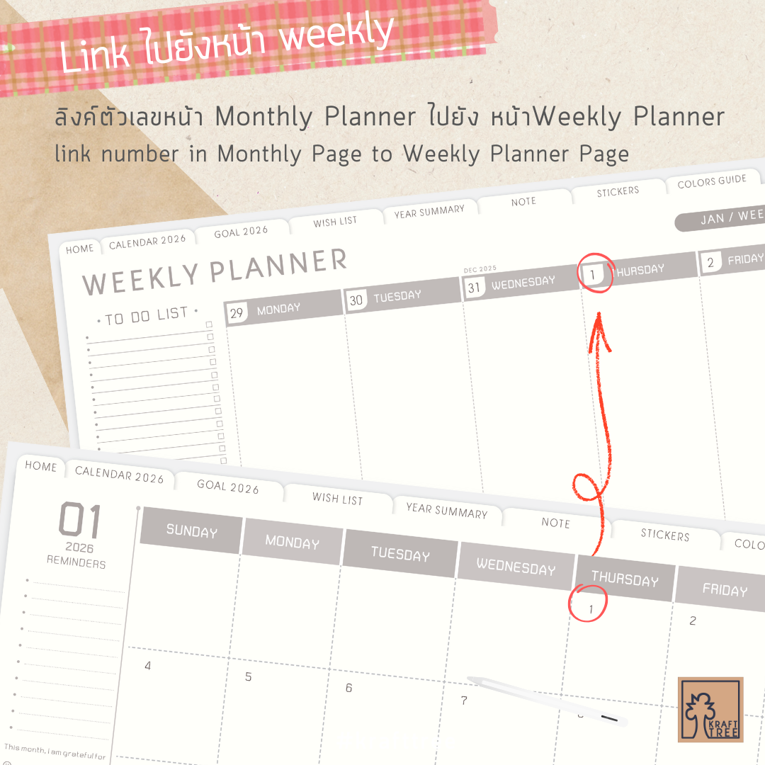 new!! ลิงค์ตัวเลขหน้า Monthly ไปยัง หน้า Weekly ทุกวัน